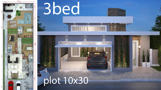Home Design 10x30m With 3 Bedrooms House Plan Map
