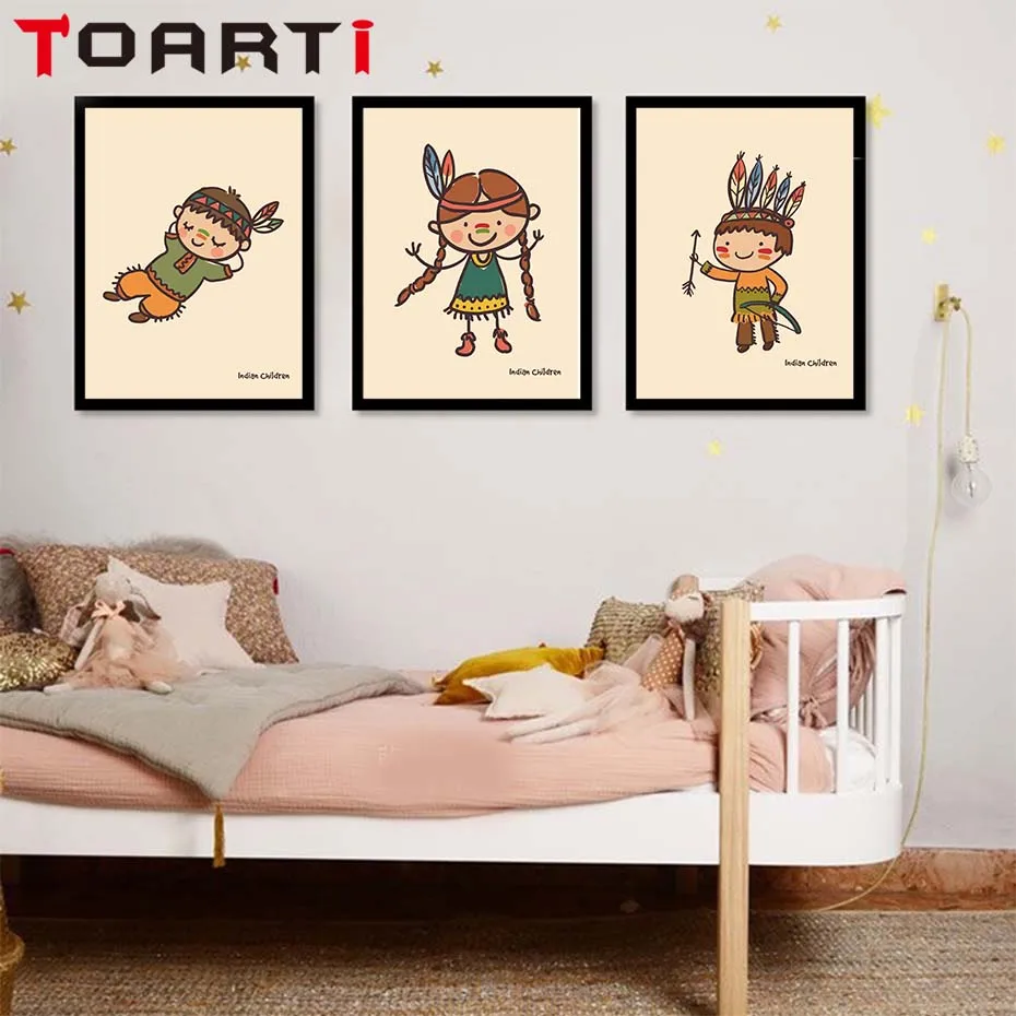 Indian Style Cartoon Children Canvas Art Painting Poster And Print Wall Decor Art For Baby Bedroom Home Decoration No Frame Painting Poster Posters And Printscanvas Art Aliexpress
