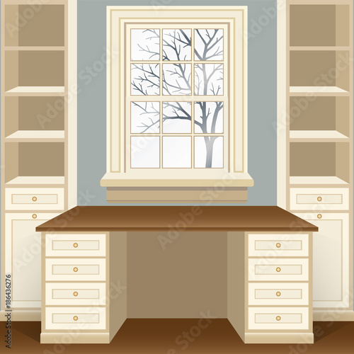 Traditional Home Office Bay Window White Stock Vector Royalty