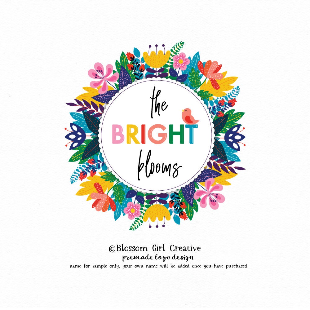 Flower Wreath Logo Bright Flowers Logo Bird Logo Florist Logo Etsy