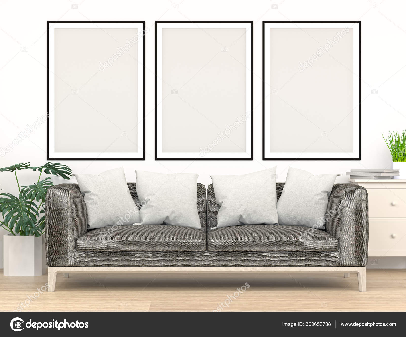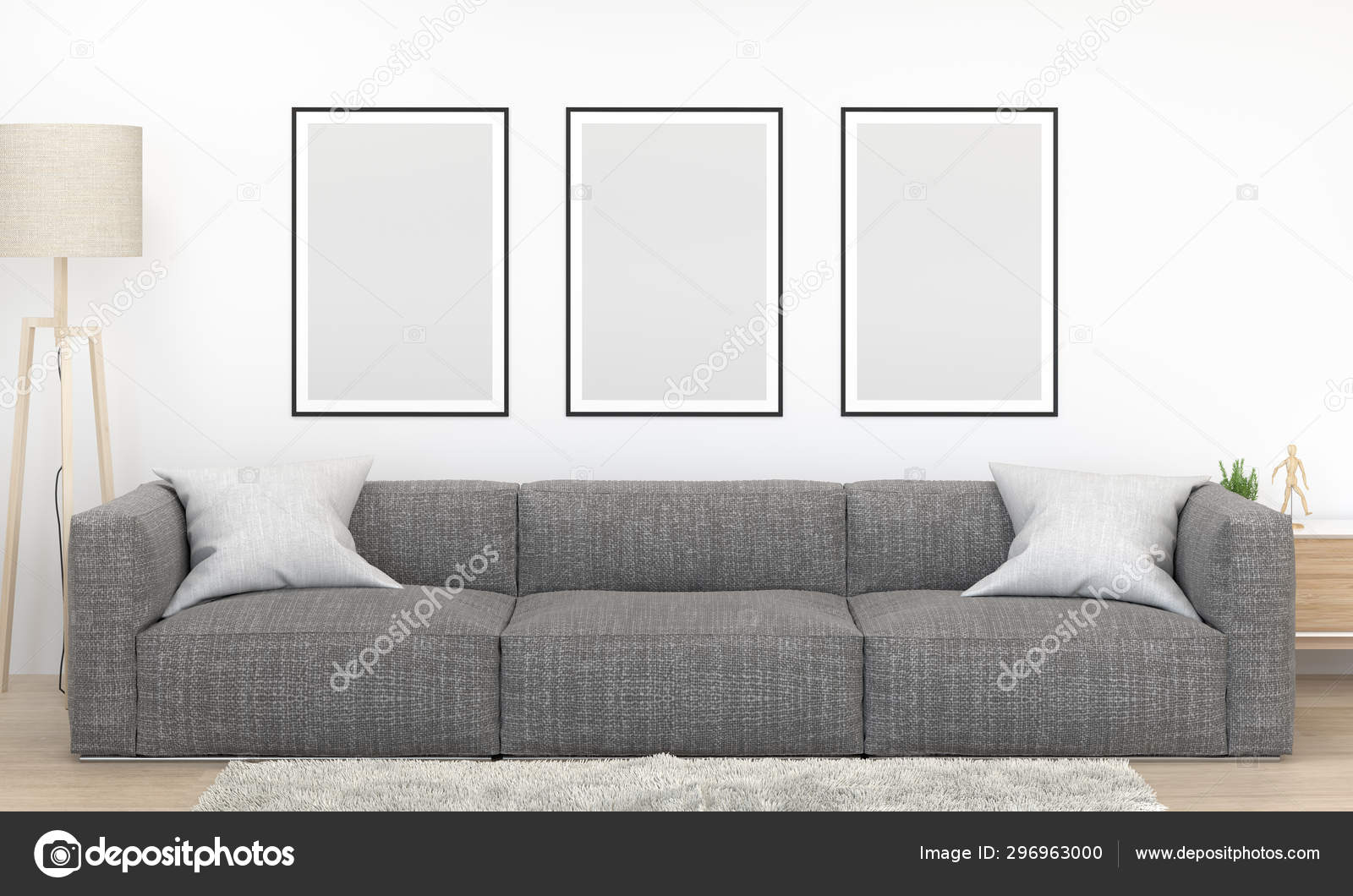 Frame Mock Furniture Front Empty Wall Rendering Modern Home Design