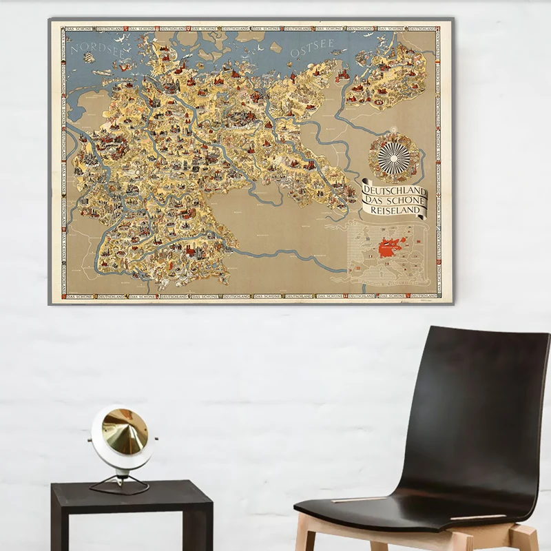 1935 Map German Country Beautiful Village Adventure Map Canvas
