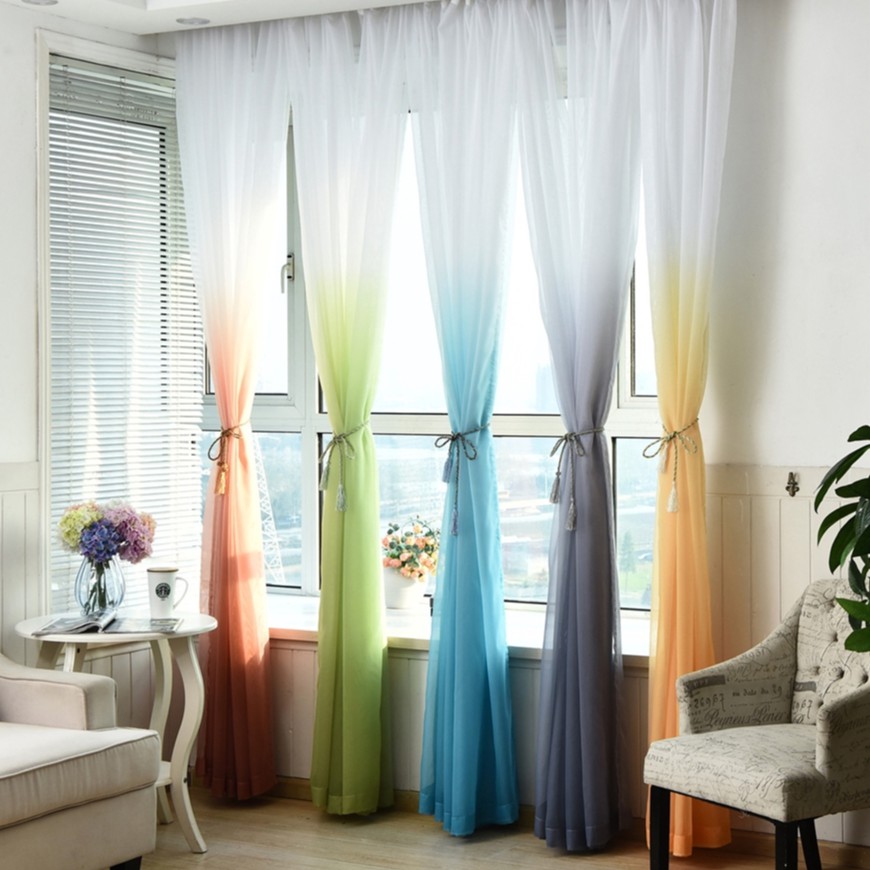 Gradient Tulle Curtain Door Window Curtains Drape Scarf Sheer