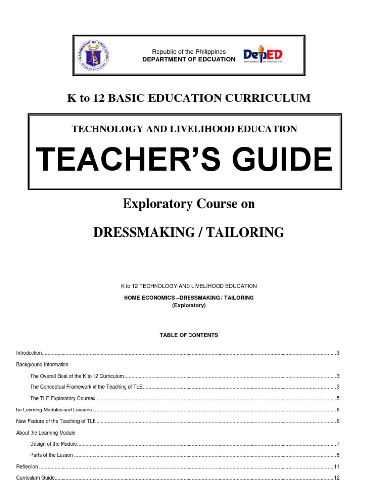 K To 12 Dressmaking And Tailoring Teacher S Guide Sewing