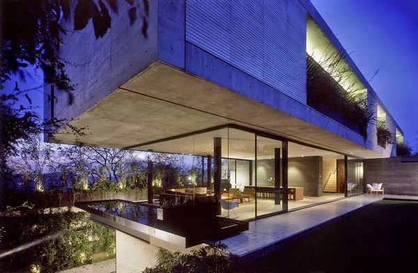Concrete And Glass House Design With L Shaped House Floor To