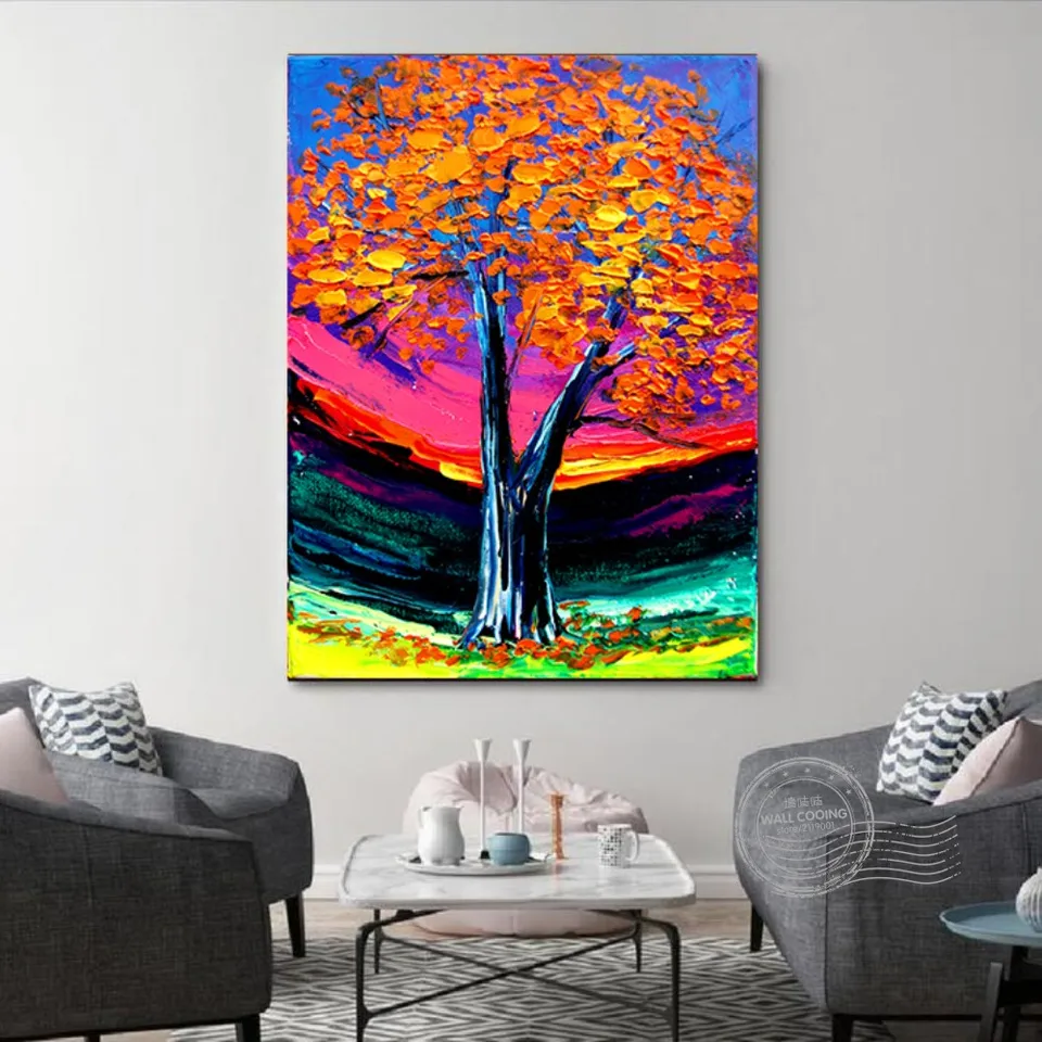 High Quality New Design Colorful Tree Oil Painting Home Canvas
