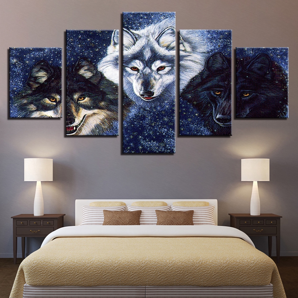 5 Pieces Of Abstract Animal Wolf Modern Hd Canvas Print Painting