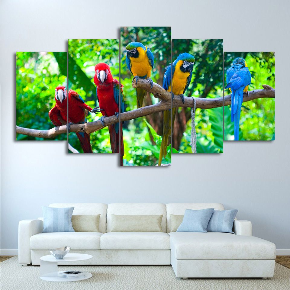 2020 Hd Printed Canvas Art Parrot On The Branch Painting Color