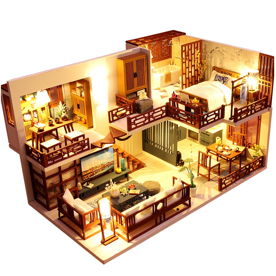 Diy Dollhouse Miniature Traditional Chinese House With Cover Lights Shopee Malaysia