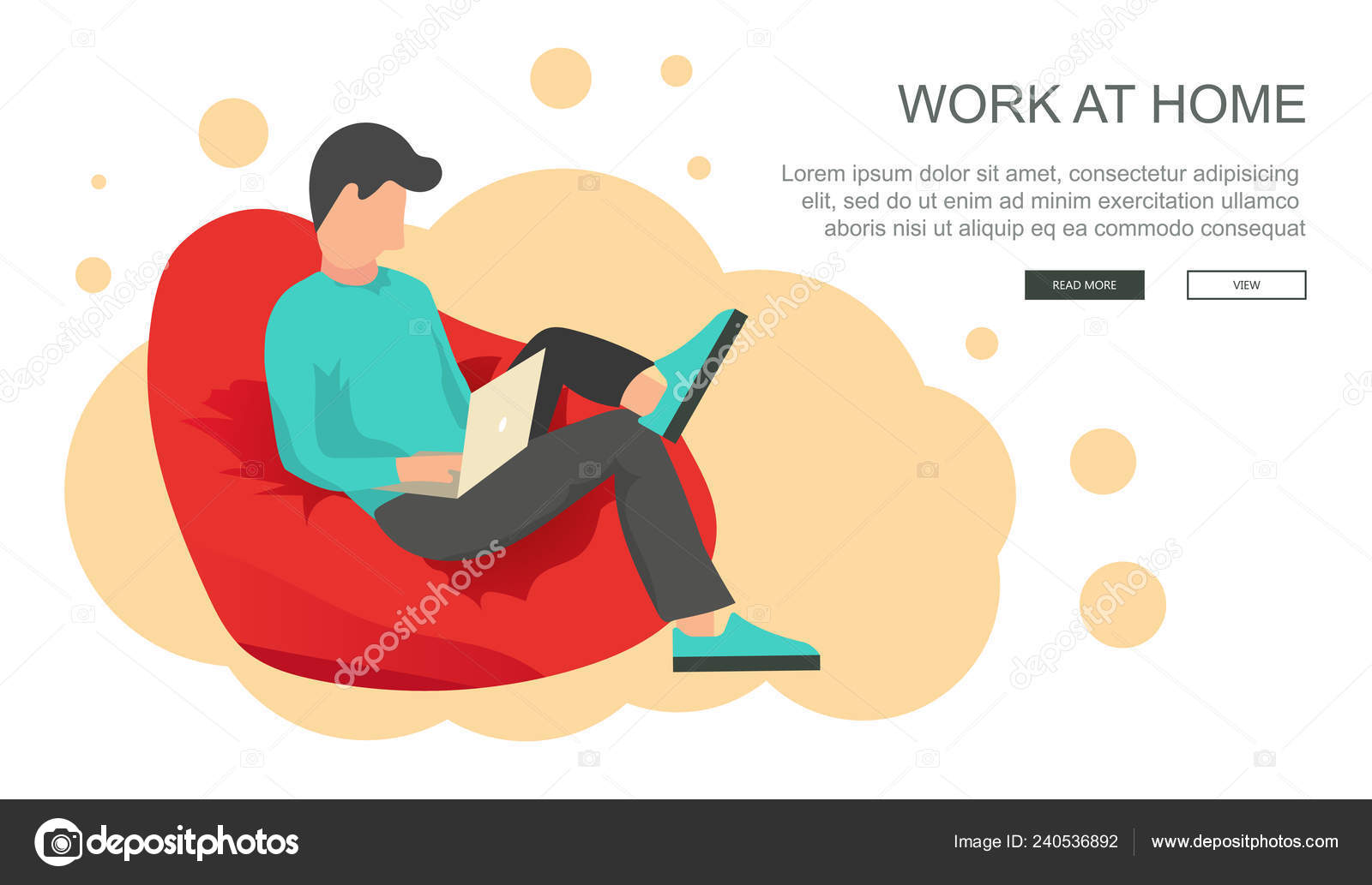 Work Home Concept Freelance Worker Sitting Lazy Bag Lap Top