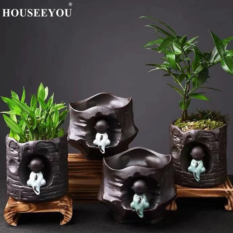 Ceramic Small Monk Succulents Plants Flower Pot Flowerpot Zen